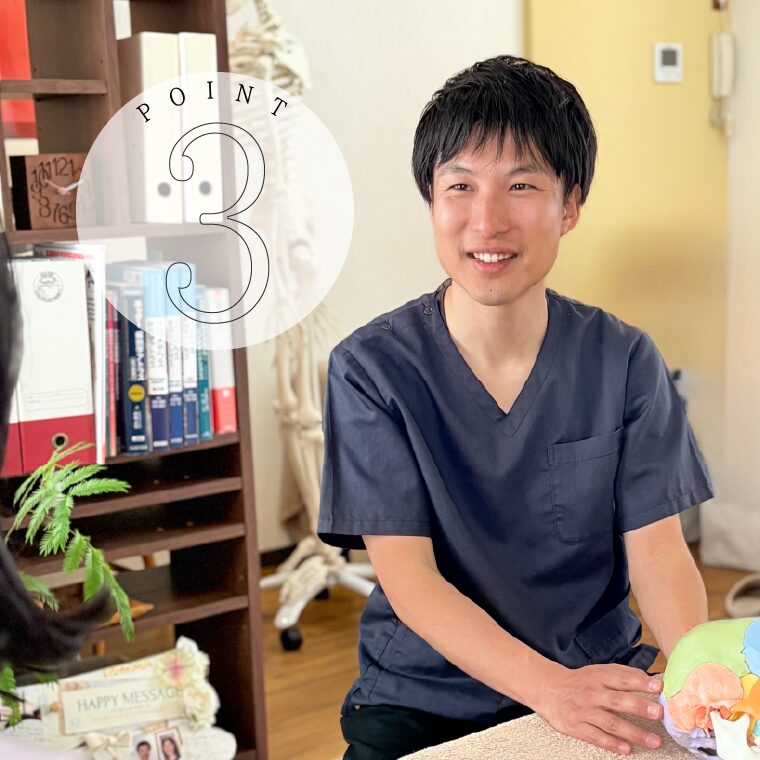 体が楽になっていく。触り方がうまい。人間性もあるし、技術もあるから、痛い場所なのに痛くないようにしてくれます…